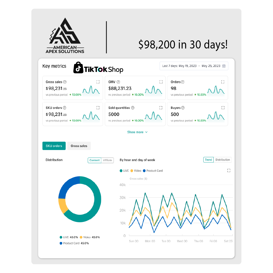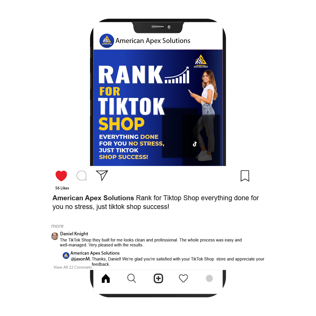 American Apex Solutions handled my TikTok Shop setup completely. From banners to listings and product research, they managed it all. I started getting customers within the first few days!