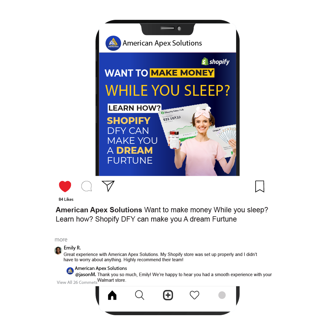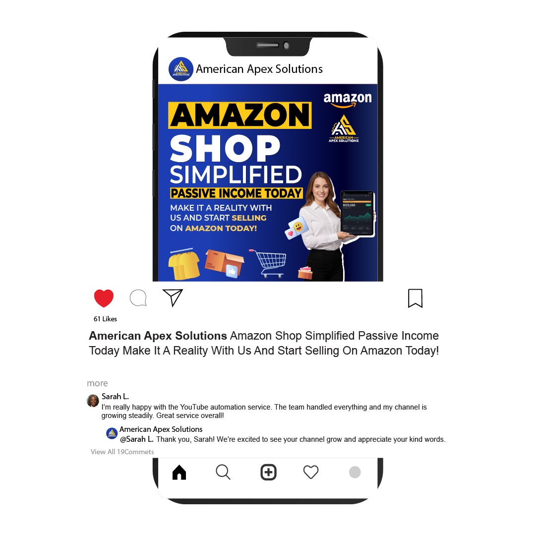 At American Apex Solutions, we help entrepreneurs build profitable online businesses without the stress of daily management. Our done-for-you eCommerce and digital income solutions are designed to deliver real, scalable results. From eBay, Amazon, Shopify, TikTok Shop, and Walmart Marketplace to YouTube Automation, our expert team handles everything—store setup, branding, product research, listings, marketing, fulfillment, and customer support—so you can earn with confidence while we manage the operations.