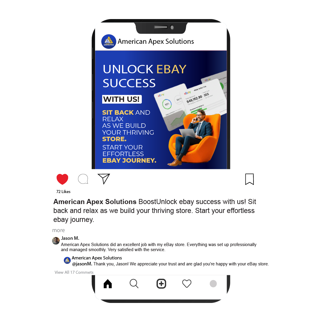 American Apex Solutions handled my eBay store setup flawlessly. They created a professional branded store, optimized product listings, and managed customer service. My sales started within weeks!
