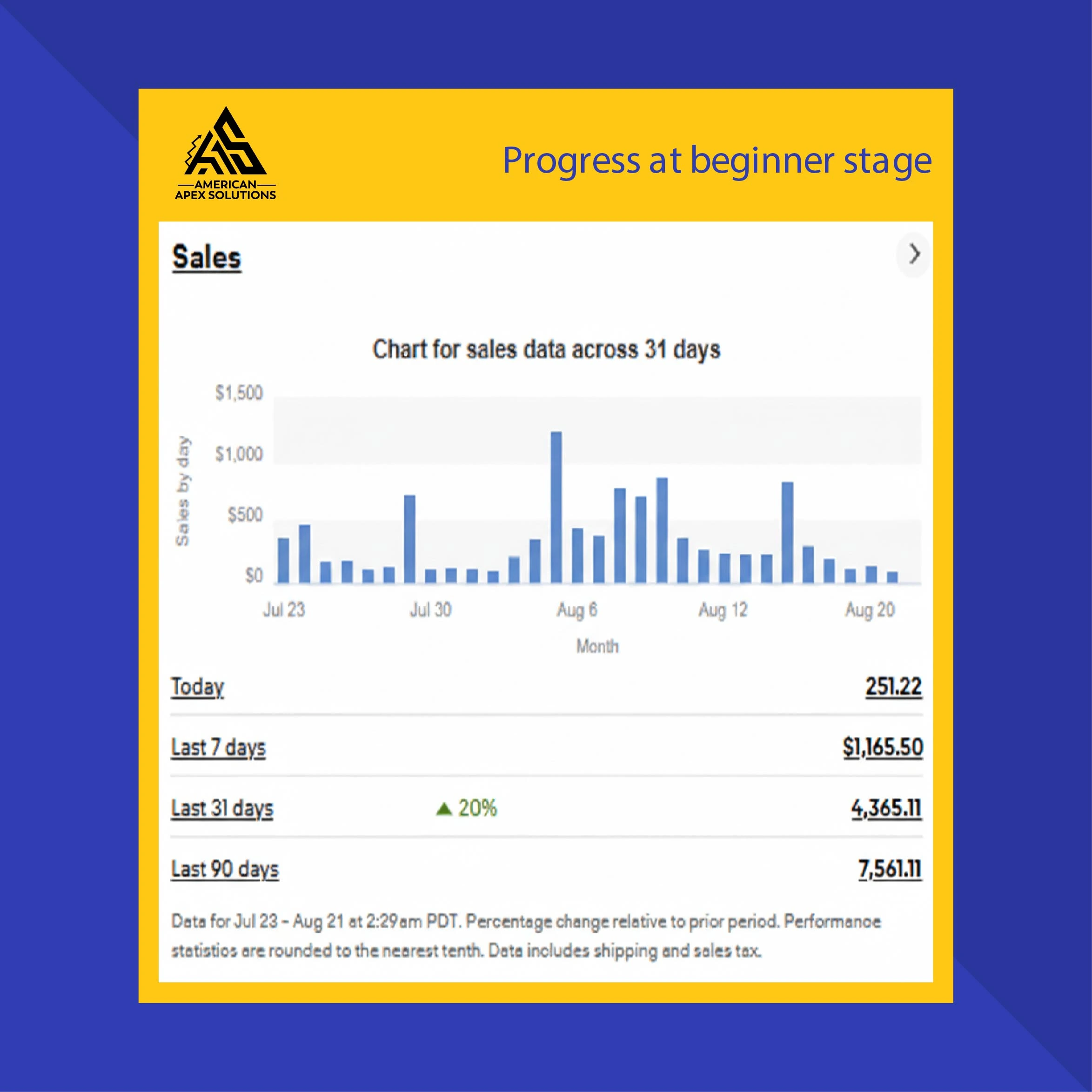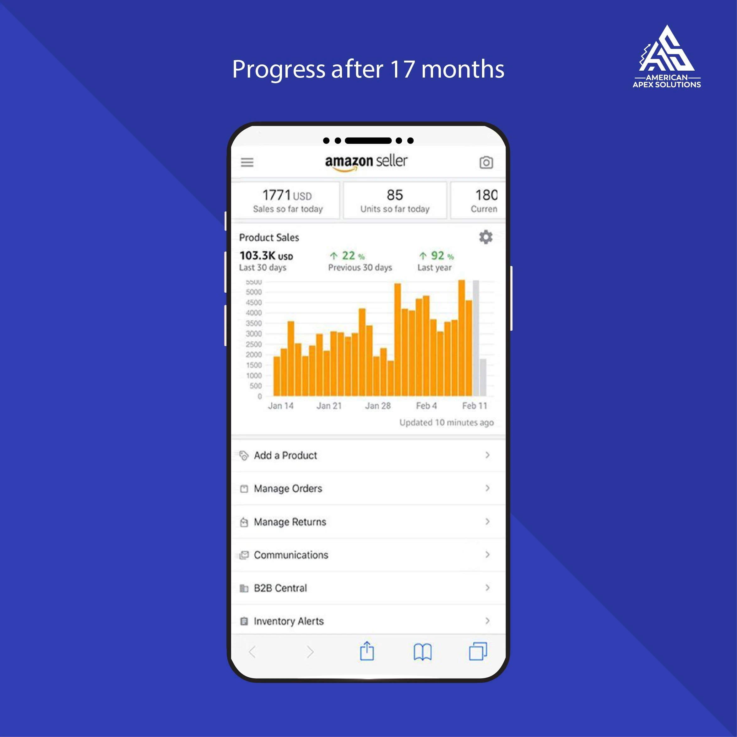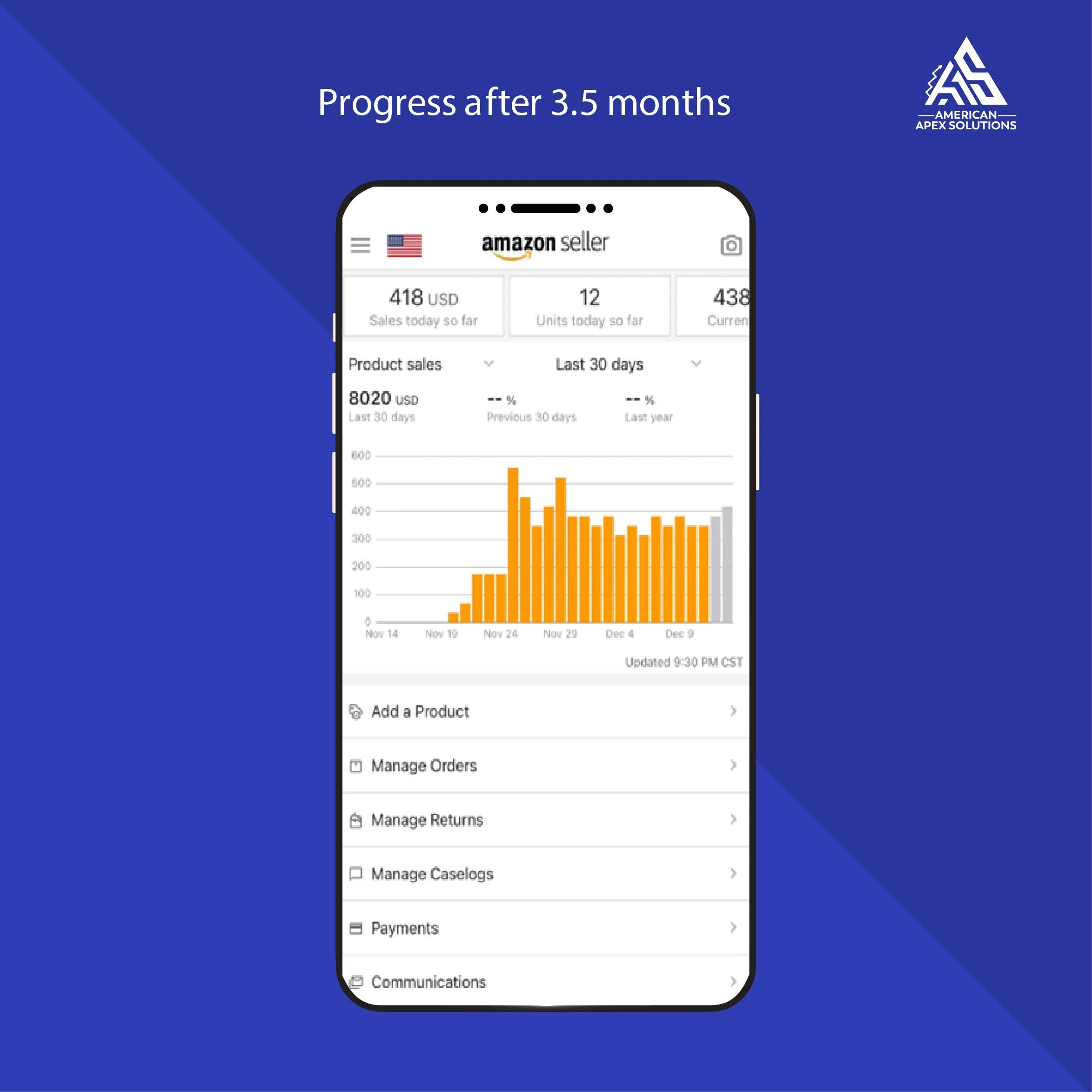 stress-free, from store setup and product research to listing optimization and full account management. The team provided constant support, clear guidance, and data-driven strategies that delivered real results without trial and error. The growth and stability I’ve achieved through their expertise make this one of the best business decisions I’ve made, and I highly recommend American Apex Solutions to anyone looking to build a successful Amazon business.